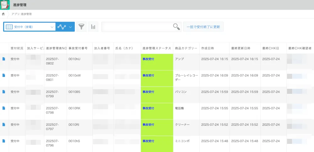 家電の修理保険業務にとどまらず、延長保証の受付や住宅設備機器修理の窓口といった他部署の業務にも活用できればと考えています。進捗管理をkintone上で行うことで、将来的には部署ごとの業務データを一元的に管理できる体制を目指しています。